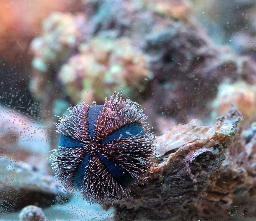 Jeżowiec jest niezastąpiony jako część ekipy sprzątającej. Zjada wszelakie glony, nawet różowe i wapienne algi porastające skały. Ze względu na ostre igły, nie zaleca się dotykania go ręką. Powinien być przekładany pomiędzy akwariami pod wodą, bez dostępu powietrza atmosferycznego.
