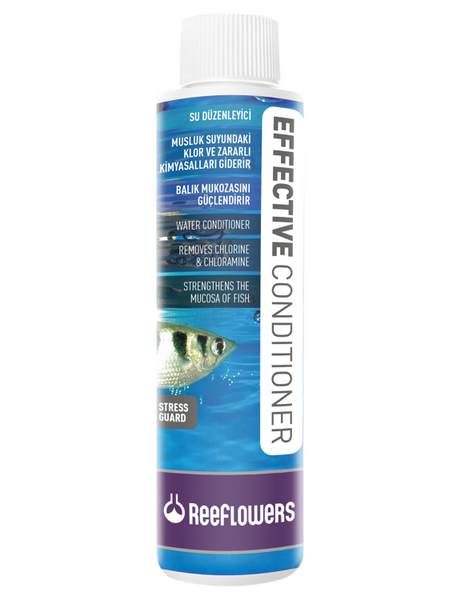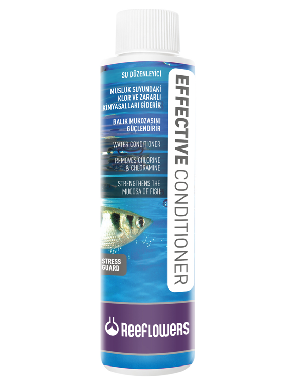 Preparat ReeFlowers Effective Conditioner eliminuje toksyczne pierwiastki z wody, tworząc bezpieczniejsze środowisko dla ryb i zwierząt wodnych.