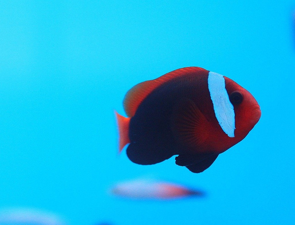 Prosty w hodowli, jak większość błazenków. Cechą charakterystyczną jest tylko jeden biały pasek, przechodzący tuż za okiem. Nie zaleca się łączyć go z innymi amfiprionami, z wiekiem może przejawiać wobec nich agresję. Jak większość błazenków, młode osobniki są samcami, największy z grupy zmienia się w samicę. Czasem zwany jest błazenkiem pomidorowym.