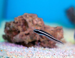 Ciekawa ryba z rodziny babkowatych. Jej ubarwienie zmienia się z czasem: młode osobniki mają ciało ciemne z jednym lub dwoma poziomymi pasami, natomiast dorosłe pokryte są wzorem przypominającym wojskową "panterkę". Mimo iż dorasta do dużych rozmiarów, ryba ta jest pokojowo nastawiona do innych mieszkańców zbiornika, nie może być trzymana razem z agresywnymi gatunkami. Należy jej zapewnić warstwę piasku, w której będzie mogła kopać. Dobrze czują się w swoim towarzystwie, jednak jeśli planujemy trzymać kilka osobników Pholidichthys leucotaenia należy je wprowadzić do akwarium za jednym razem. Z powodzeniem jest rozmnażana w warunkach akwariowych.