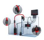 Podłącz wykrywacz nieszczelności do awaryjnego szybkiego działania w akwarium, a ekosystem ReefBeat automatycznie wyłączy inne urządzenia ReefBeat, takie jak pompy zwrotne ReefRun.