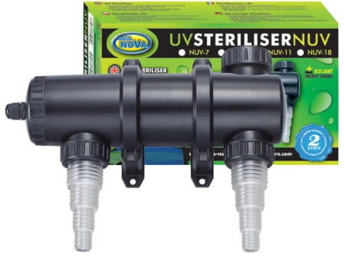 Aqua-Nova NUVC-11 jest to sterylizator o mocy 11 W, eliminuje organizmy jednokomórkowe, czyli bakterie wodne i wirusy, które zagrażają życiu ryb i roślin.