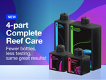 4-częściowy Complete Reef Care ułatwia rutynową suplementację bez dodatkowych kosztów i zapewnia optymalny wzrost koralowców oraz intensywne wybarwienie przy zaledwie jednym teście tygodniowo.
