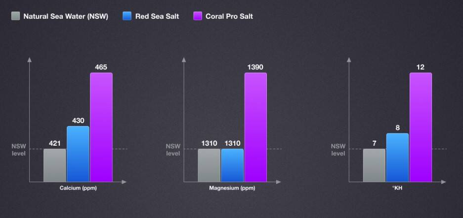 Sól zawiera umiarkowanie podwyższone i zrównoważone poziomy podstawowych pierwiastków (wapnia, magnezu, wodorowęglanów) niezbędnych do zrównoważonego wzrostu koralowców.
