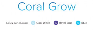 Blade Coral Grow zawiera następujące 24 diody na grupę klastrów: