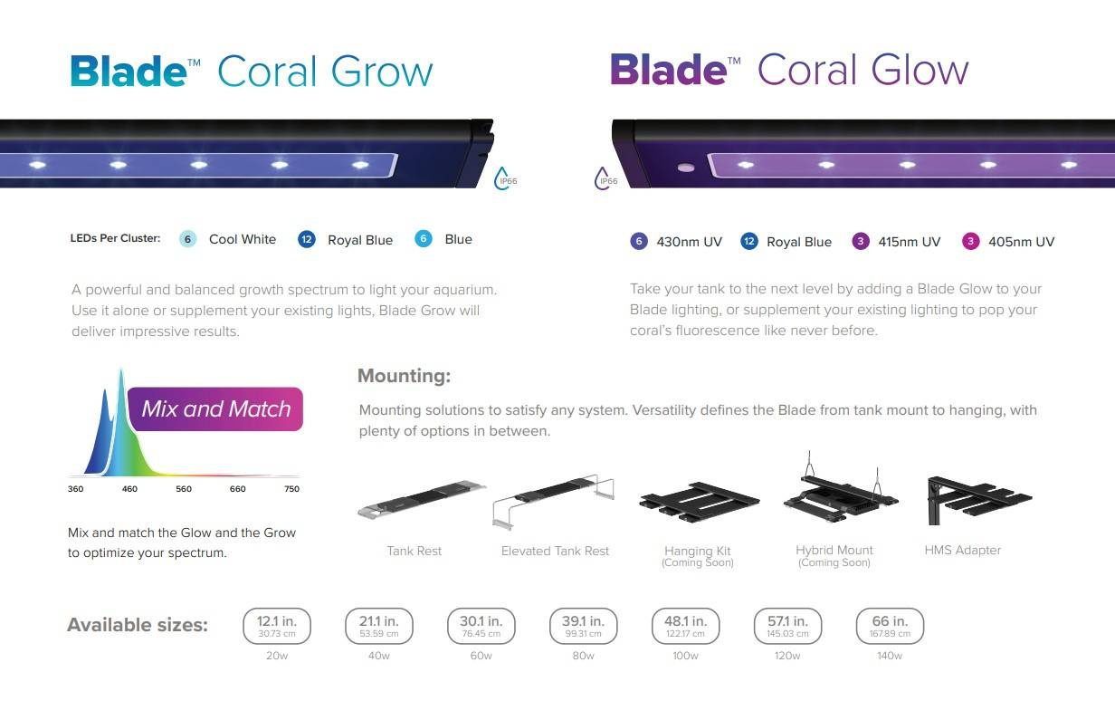 Jest to dalekie od typowej lampy LED! Ostrze maksymalizuje kolor i wydajność, zawiera ekskluzywną optykę EdgeField TM , aby zapewnić równomierny współczynnik PAR, płynne mieszanie kolorów, wyjątkowe rozproszenie 95 stopni i naturalny efekt migotania w Twoim akwarium.