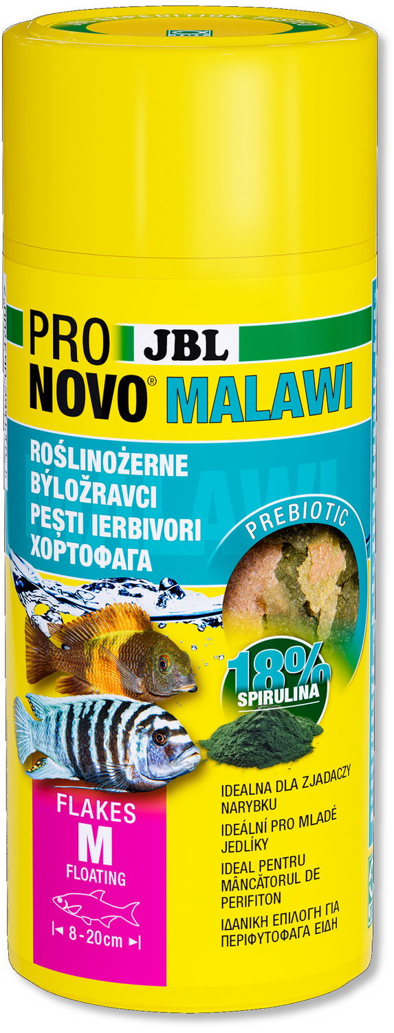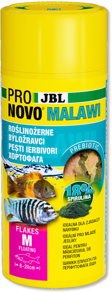 Ponieważ większość hodowanych gatunków z Jeziora Malawi są to ryby zjadające porosty, firma JBL nazwała ten pokarm PRONOVO MALAWI.