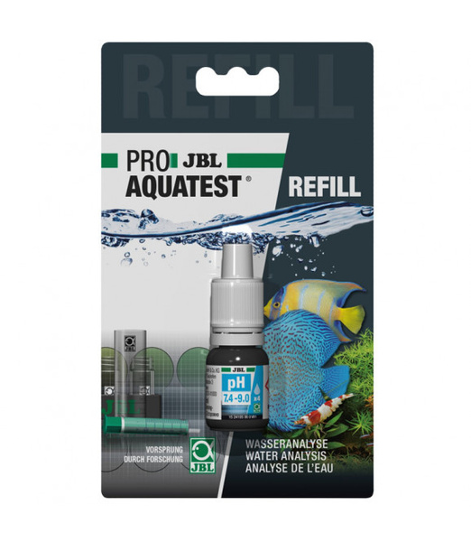 JBL pH - 7.4-9.0 służy dokładnemu pomiarowi jak i rutynowej kontroli wartości Ph w wodzie słonej i lekko alkalicznej wodzie słodkiej, co jest konieczne, np. do prawidłowej pielęgnacji ryb z afrykańskiego jeziora Malawi. Preparat można z pełnym powodzeniem stosować w lekko zabarwionej wodzie akwariowej jaka powstaje podczas leczenia chorych ryb. Utrzymanie wartości pH na możliwie stałym poziomie ma ogromne znaczenie dla samopoczucia wszystkich organizmów wodnych. Szczególnie w należy unikać nagłych zmian wartości pH. Za optymalną wartość pH dla organizmów morskich uważa się wartość ok. 8.2. Szczególnie w akwariach z wodą morską z niższego rzędu organizmami (bezkręgowcami) wartość pH może zostać obniżona poprzez zużycie Ca (HCO3)2, jeśli nie podwyższa się jej regularnie w wodzie akwariowej. Wartość pH i twardość węglanowa służą jako wielkości kontrolne. Przy pielęgnacji ryb z lekko alkalicznych zbiorników wodnych, np. z afrykańskich jezior Malawi i Tanganika możemy przeprowadzić, dzięki testowi pH, dokładną kontrolę wartości pH i regulację danej wartości do poziomu odpowiedniego dla danego gatunku. Ogólnie rzecz biorąc zalecana wartości pH wynosi ok. 8-8.5.