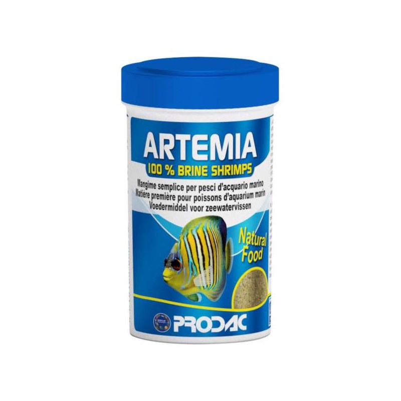 Prodac Artemia to wysokiej jakości, naturalny pokarm zaspokajający potrzeby wszystkożernych i mięsożernych ryb słodkowodnych oraz morskich. Pokarm jest wytwarzany w procesie liofilizacji, który skutecznie eliminuje wszelkie organizmy mogące być przyczyną chorób ryb. Proces ten pozwala jednocześnie zachować wszystkie odżywcze składniki artemii. Brine Shrimp jest bogaty w witaminy, nienasycone kwasy tłuszczowe, białko i inne składniki pokarmowe, podobnie jak żywy solowiec. Jest ceniony za wysoką zawartość białka, tłuszczów i węglowodanów. Polecany do karmienia narybku. Sprawia, że młode ryby szybko rosną i przybierają na wadze.