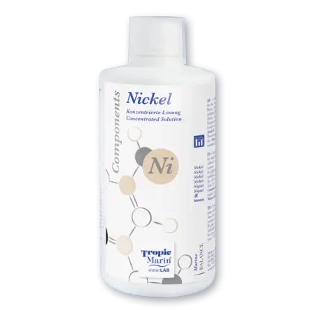 Nikiel jest metalem przejściowym; jako pierwiastek śladowy wspomaga wzrost koralowców. Dzięki lepszemu wykorzystaniu związków azotu pogłębia i wzmacnia ich barwę (czerwoną + turkusową). Formowanie się dysków bazowych jest problematyczne, jeśli zawartość niklu jest zbyt niska. Uzyskanie intensywnych kolorów i silnych kontrastów jest również trudne bez niklu. Występuje on w oceanie w bardzo niskich stężeniach, wynoszących 0,5–2 μg/l.