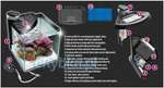 Za utrzymanie właściwych parametrów wody odpowiada wielostopniowa, wydajna filtracja w postaci mechanicznych i biologicznych wkładów filtracyjnych. Odpieniacz napędzany jest wysokowydajną pompą o bardzo małym (2,6 W) poborze prądu. Na energooszczędność całego zestawu dodatkowo wpływa zastosowane oświetlenie w postaci diod: 18x białe i 6x niebieskie o łącznym zużyciu prądu tylko 7W. Światło sterowane jest przy pomocy dwóch przycisków, dzięki którym możemy ustawić godziny włączania i wyłączania poszczególnych kanałów oświetlenia, a cały osprzęt jest estetycznie schowany w zabudowie narożnika.